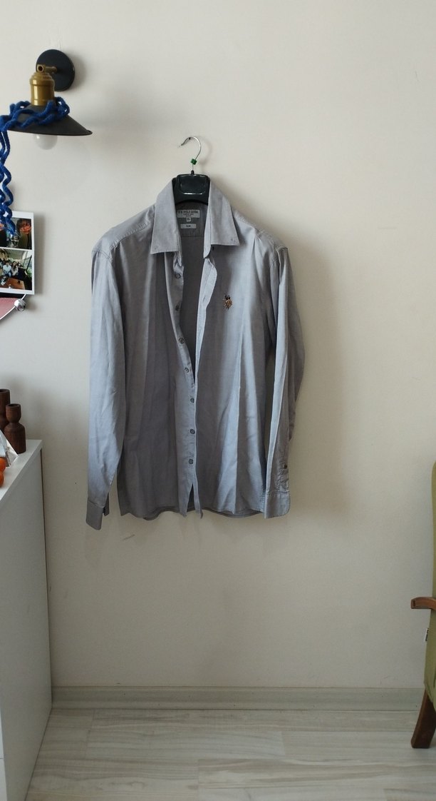 Erkekler için kumaştan yapılmış, gri renkli, düğmeli ve normal kesim uzun kollu gömlek. Ofis ve günlük sokak stili için uygundur. ürün 1-2 kere kullanılmış olup omuz çizgisinden 72 santimetre uzunluğunda koltuk altından iki kol arası 57 58 santimetredir