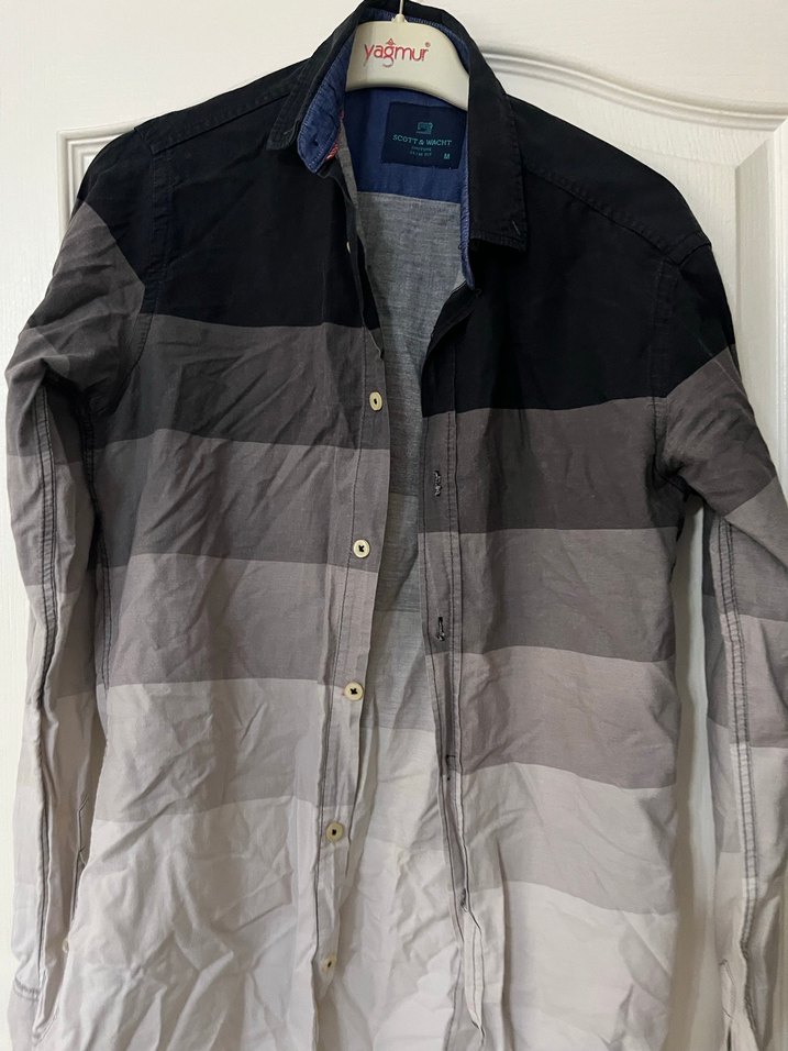 Pamuklu, düğmeli, uzun kollu gri erkek gömleği, regular fit ve yakalı tasarımıyla günlük sokak stili için uygundur.