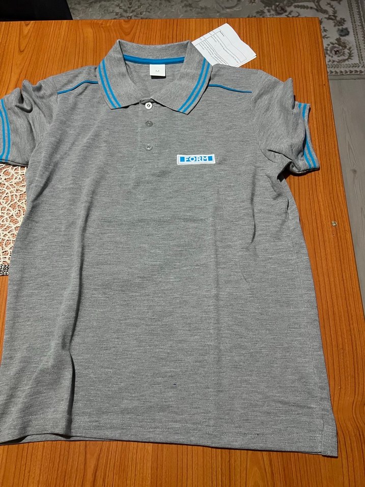 Pamuklu, kısa kollu, düğmeli ve yakalı erkek gri polo tişört. Mavi şerit detaylar ve küçük baskılı logo bulunur. Günlük kullanıma uygundur. İki adet kullanılmadı tam kalıp arkası düz yazı yok yeni