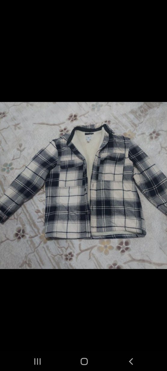 Gri ekose desenli, düğmeli ve yakalı erkek çocuk ceketi. Yumuşak ve sıcak kumaştan, rahat kesimli ve günlük tarz için uygun.