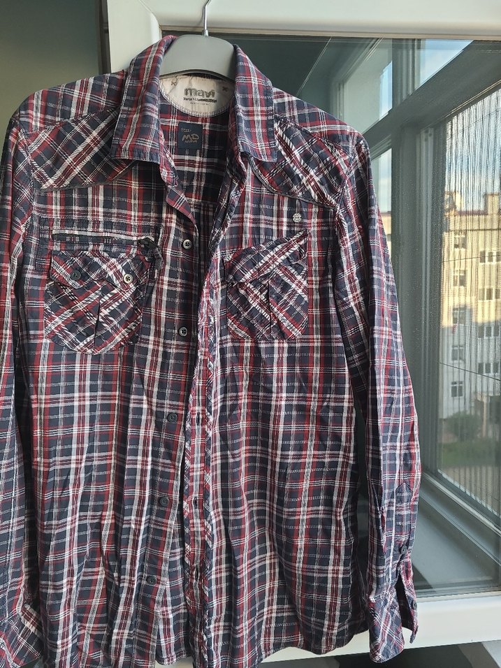 Erkek gömlek, düğmeli ön ve uzun kollu, çıtçıtlı yaka detayına sahiptir. Rahat kesim ve midi boyda, tekstil kumaştan üretilmiştir. Gri ekose deseni günlük kullanıma uygundur.