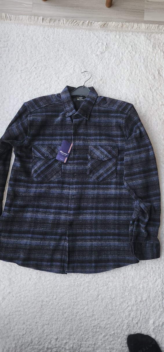 Düğmeli ön, uzun kollu ve regular fit kesime sahip erkek gömleği. Yumuşak yün kumaştan, koyu gri ekoseli desenli ve notched lapel yakalı, gündelik sokak stili için uygun.