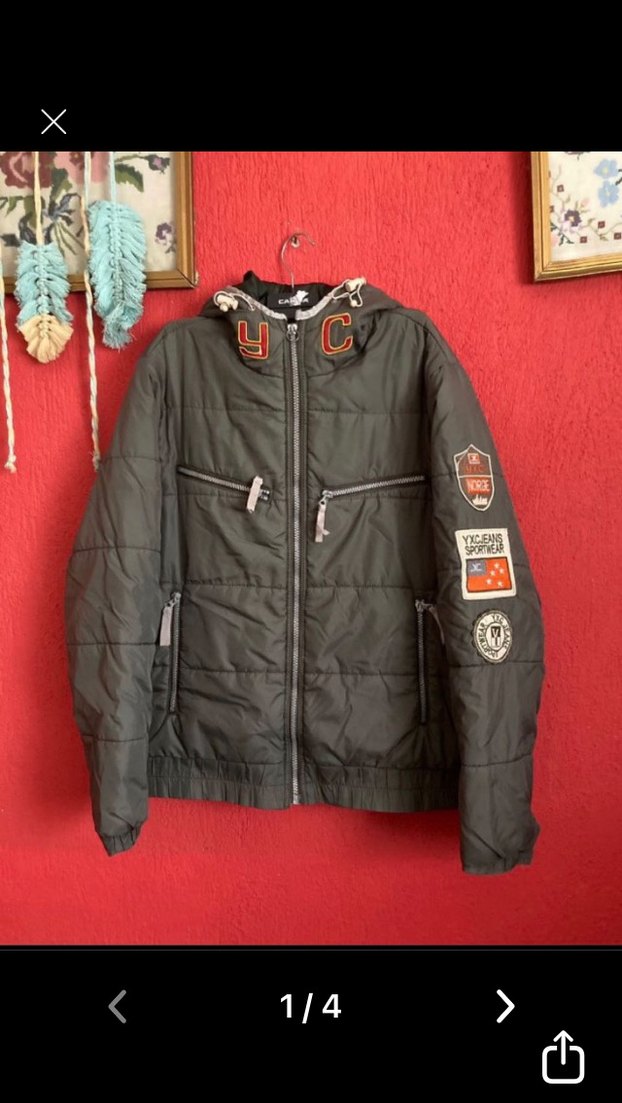 Erkek için fermuarlı, yumuşak ve sıcak kumaştan, kesimi dar olan gri renkli streetwear ceket. Rock punk tarzına uygun yamalar bulunur.