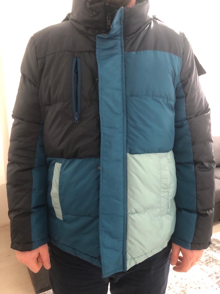Erkek mont, kırlangıç yaka ve uzun kollu, fermuarlı kapama ile sade ve şık. Yumuşak ve sıcak kumaştan, günlük kullanıma uygun, gri ve mavi tonlarda renk bloklu tasarım.
