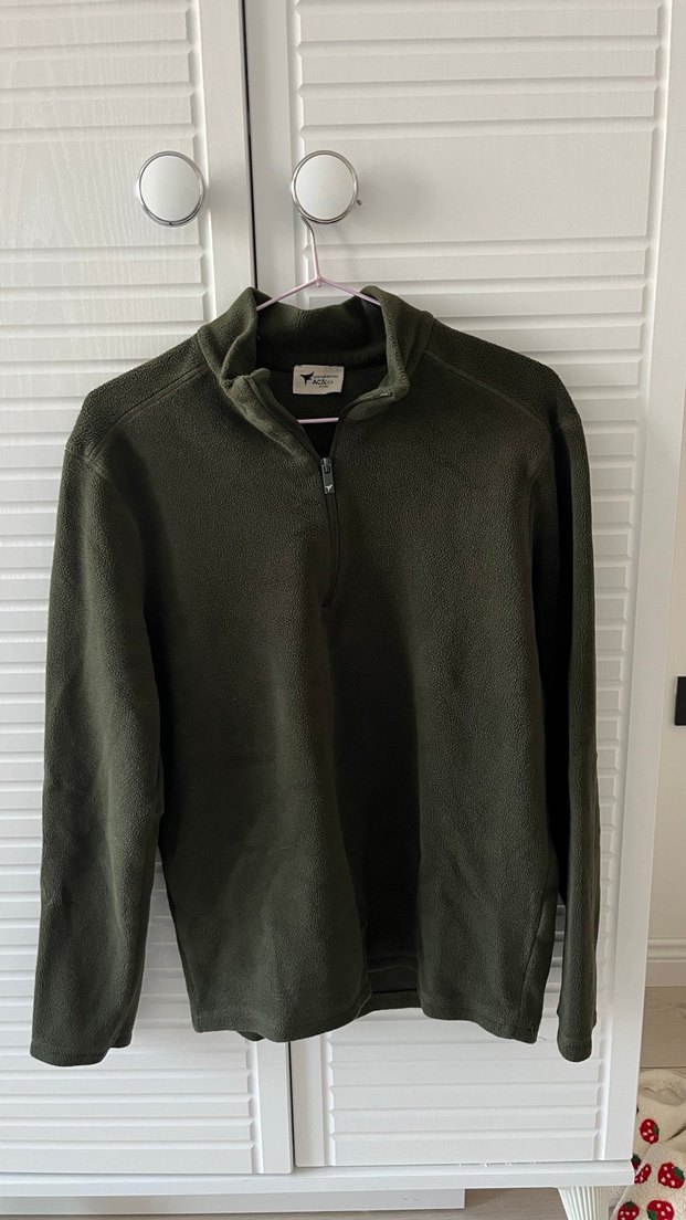 Erkek Gri Fermuarlı Yüksek Yakalı Polar