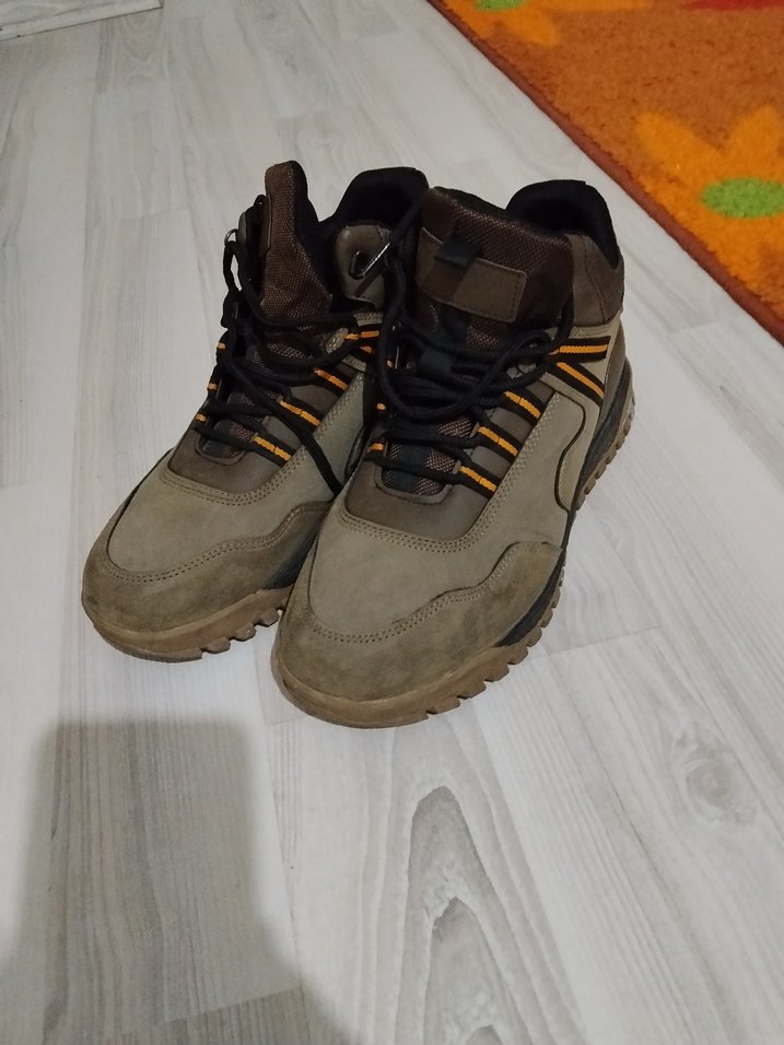 Gri ve kahverengi tonlarında, tokalı detaylara sahip erkek botları. Sokak stili ve dış mekan kullanımı için uygundur, trend ve rahat bir görünüme sahiptir.