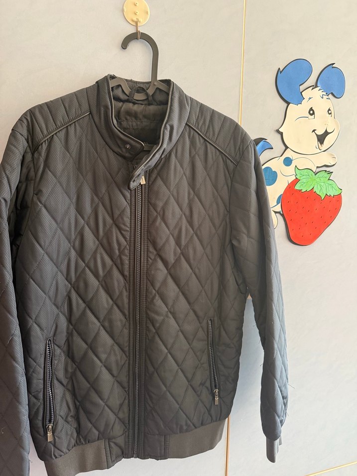 Erkekler için gri kapitone desenli, fermuarlı ve uzun kollu ceket. Notch yaka ve regular kesime sahip, sentetik kumaştan günlük kullanıma uygun.