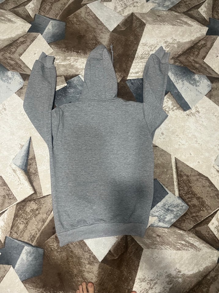 gri renkte, kapüşonlu ve fermuarlı sweatshirt. Yumuşak ve sıcak kumaştan, salaş kesim, günlük rahat kullanım için uygundur.