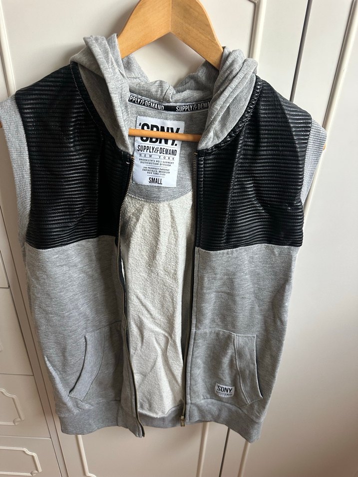 Erkekler için gri kapüşonlu, fermuarlı ve baskılı desenli, yüksek yakalı, fitted kesim yelek. Sokak stiline uygun, yumuşak ve sıcak kumaşla üretilmiştir.
