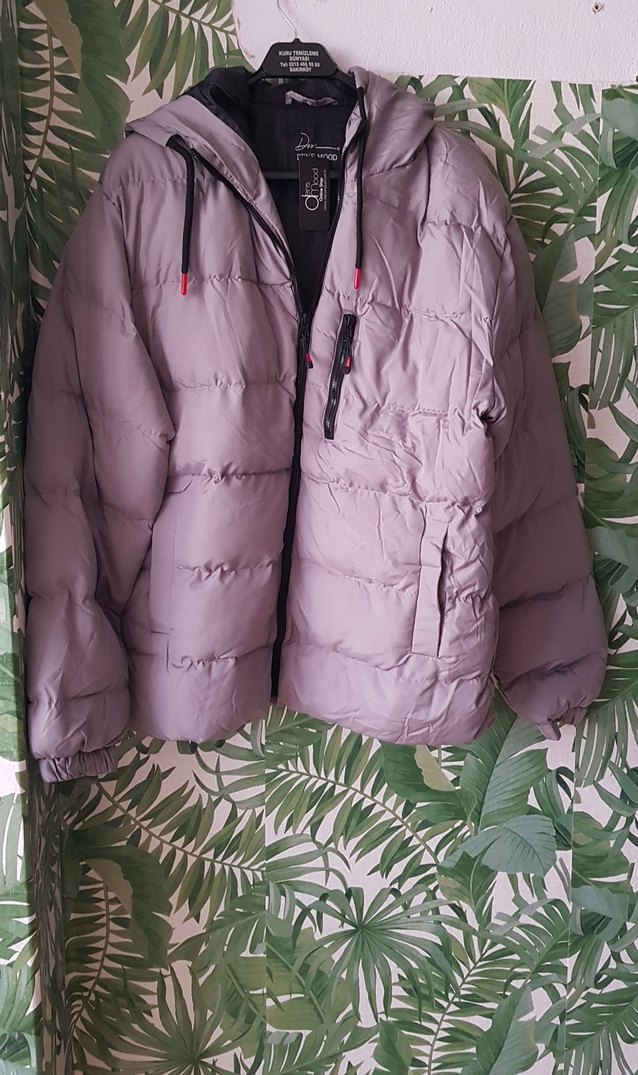 Erkekler için gri renkte, kapüşonlu, sentetik kumaştan yapılmış, fermuarlı ve cep detaylı, rahat kesim normal uzunlukta kışlık mont. Dış mekan kullanımı için uygundur. Yağmur ve rüzgar geçirmez koltuk altı ölçüsü 60 cm uzunluk 72 cm şapkası çıkmıyor