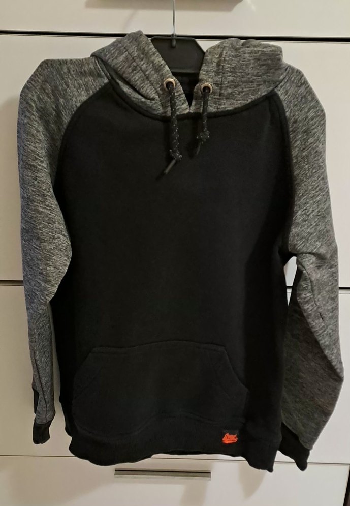 Erkekler için kapüşonlu, uzun kollu, bol kesim gri sweatshirt. Yumuşak ve sıcak kumaştan, fermuarlı detaylı, rahat sokak stili için uygundur. sayılı ve temiz kullanıldı.