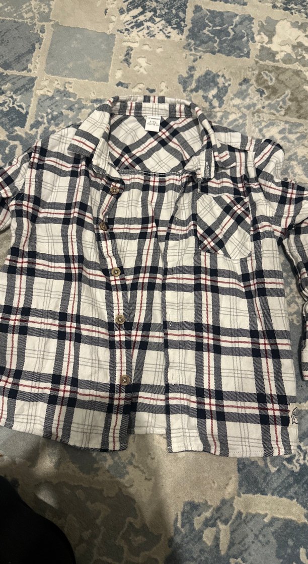 Erkek çocuklar için düğmeli, uzun kollu ve yakalı pamuklu gömlek. Geniş kesimi ve gri kareli deseniyle rahat ve şık bir görünüm sunar.