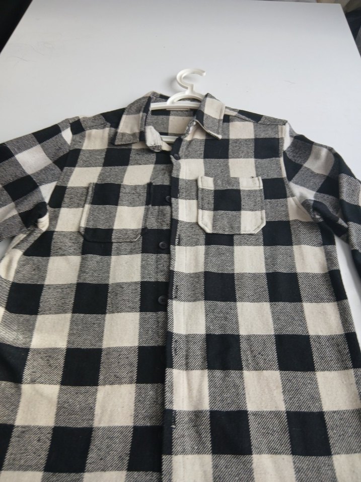 Pamuklu kumaştan, gri kareli desende, düğmeli ve yakalı, bol kesim erkek gömlek. Rahat sokak stili için uygundur.