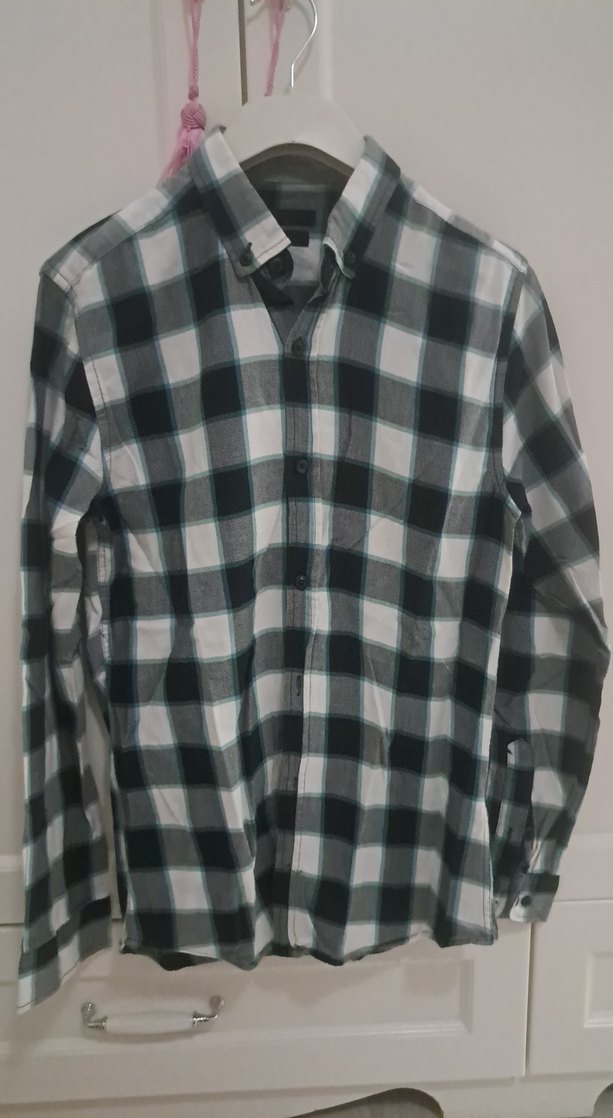Pamuk kumaştan üretilmiş, gri kareli desene sahip, yakalı ve düğmeli erkek gömleği. Uzun kollu ve regular fit kesim, günlük sokak stili için uygundur.