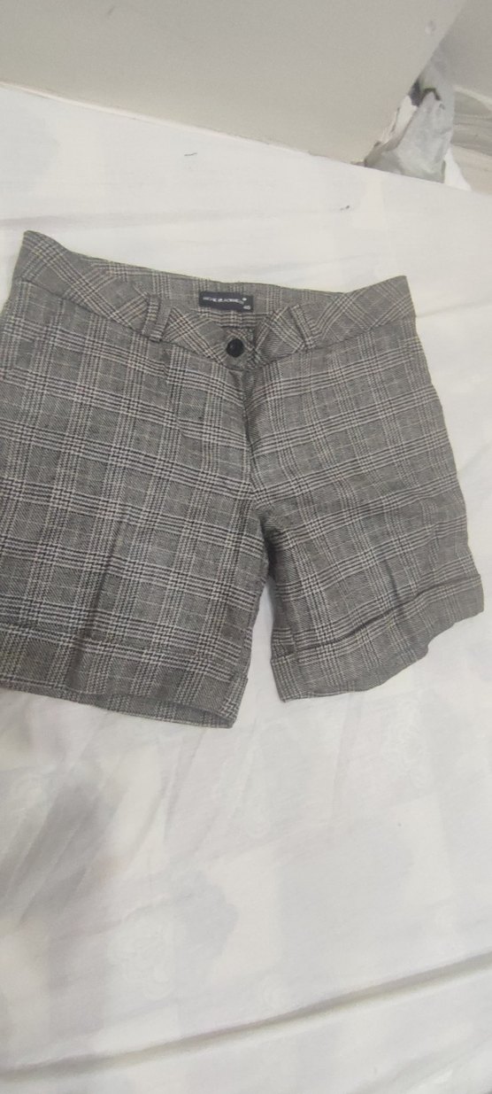 Erkekler için gri renkte, nefes alabilen keten kumaştan yapılmış, düğmeli ve mini boyda, gündelik rahat kullanım için uygun şort.