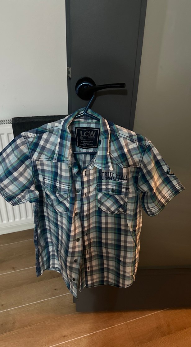 Kısa kollu, düğmeli, gri tonlarında kareli desenli erkek gömleği. Salaş kesimi ve yakası günlük sokak stiline uygun.LCW göğüs 42 cm boy 64 cm