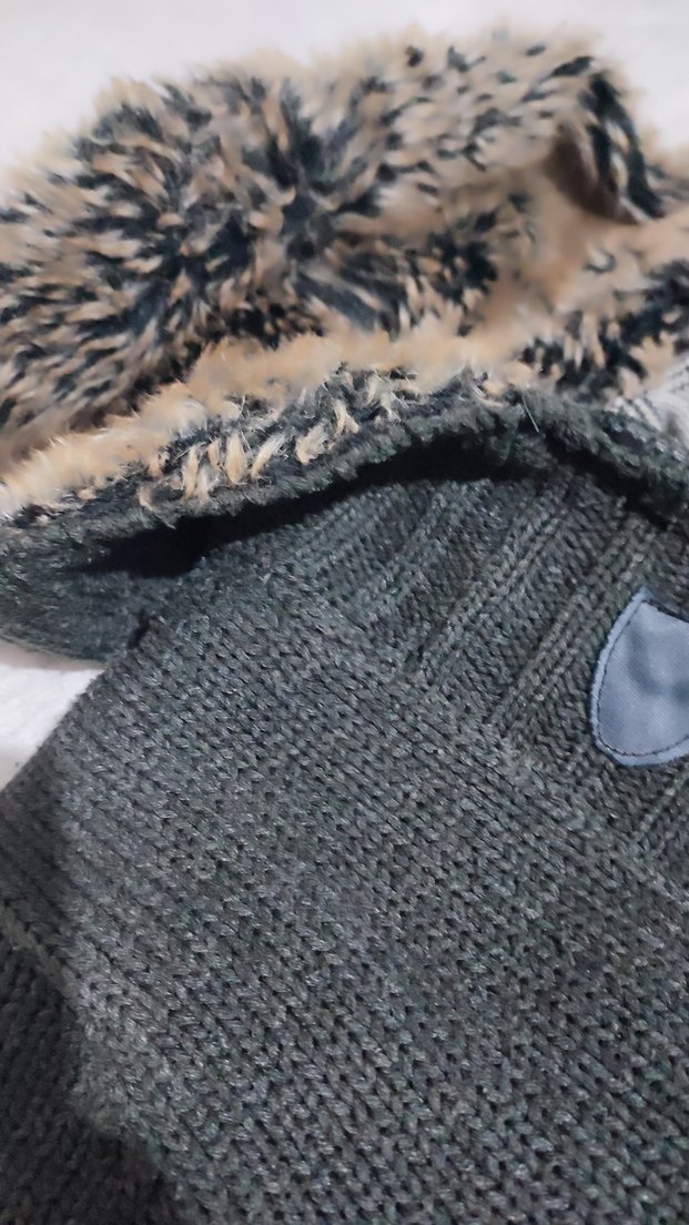 Erkek için yumuşak yün ve kürk detaylı, kapüşonlu, uzun kollu, işlemeli desenli kısa kesim kış ceketi. Günlük sokak stiline uygundur.