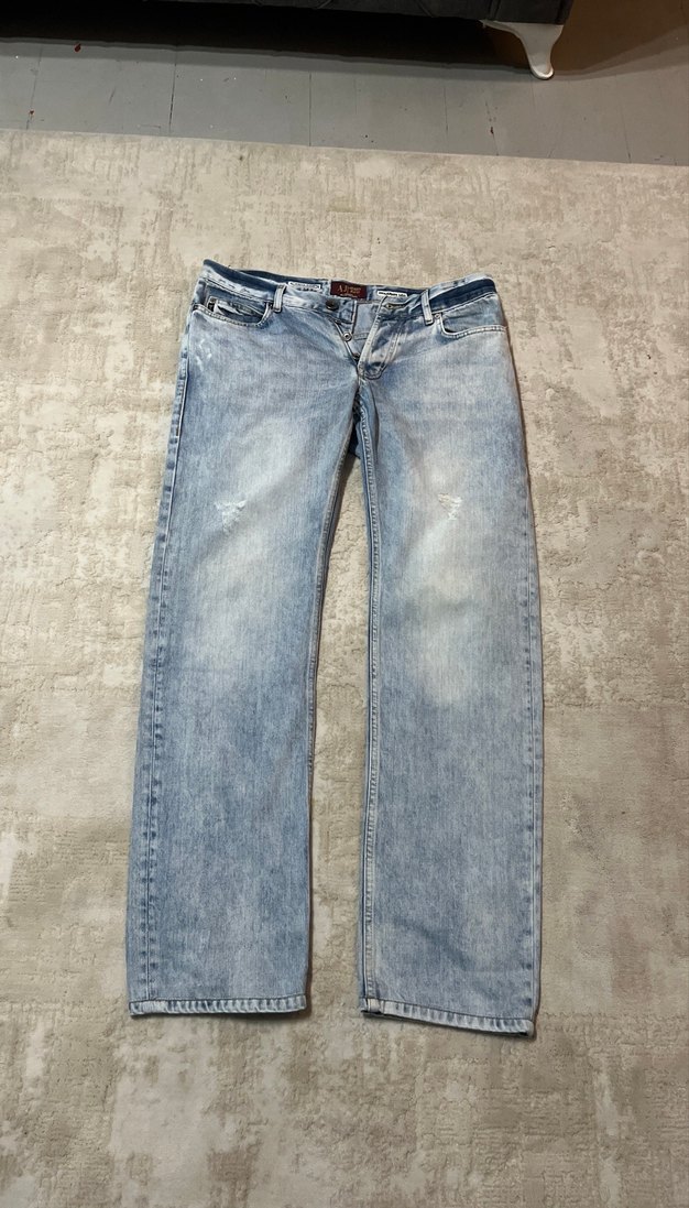 Erkek Gri Mavi Bol Kesim Midi Denim Pantolon 33-32
