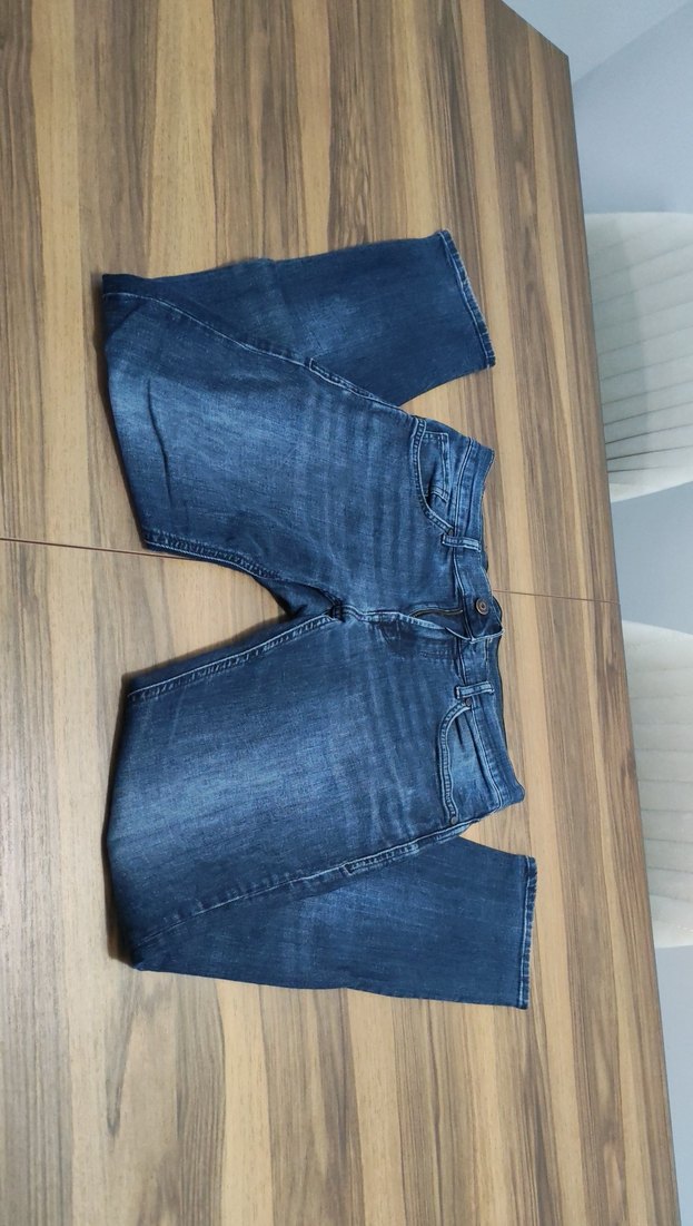 Gri-mavi tonlarda denim kot pantolon.