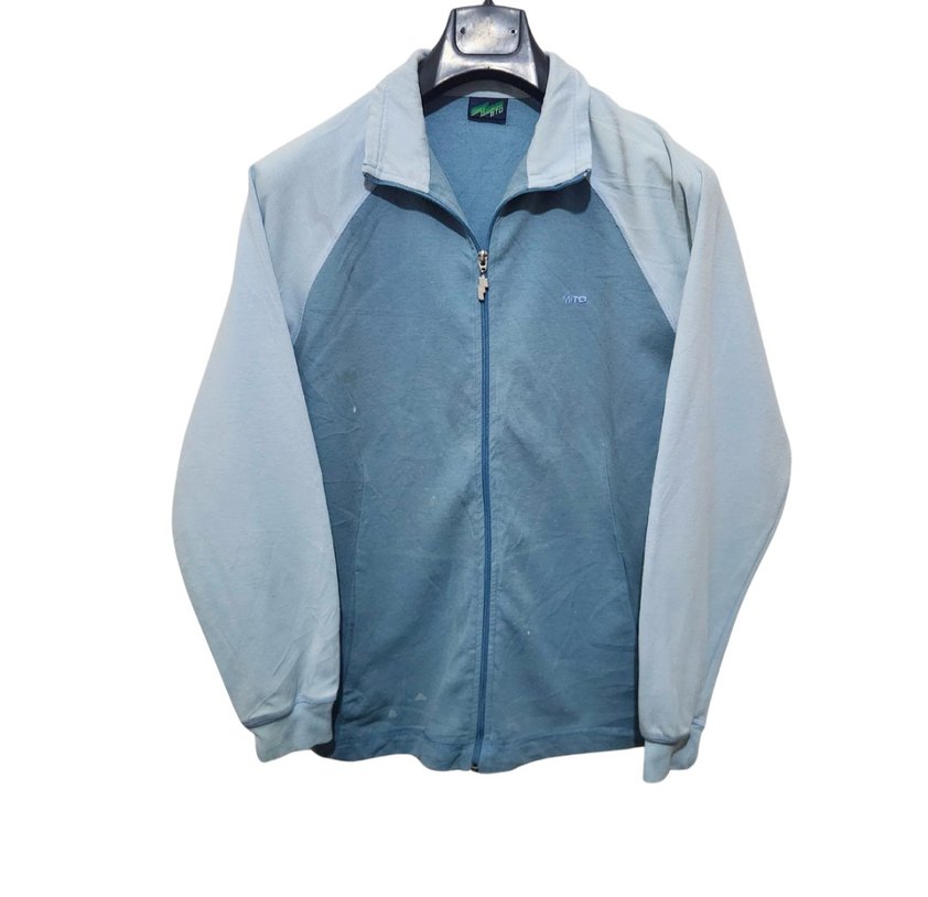 Gri ve mavi renk bloklu, uzun kollu fermuarlı erkek sweatshirt. Salaş kesimi ve bisiklet yaka detayıyla dış mekan kullanımı için uygundur. 72×58 m l beden uyumlu ürünün ön tarafında bir çok lekesi vardır görselde belirtilmiştir