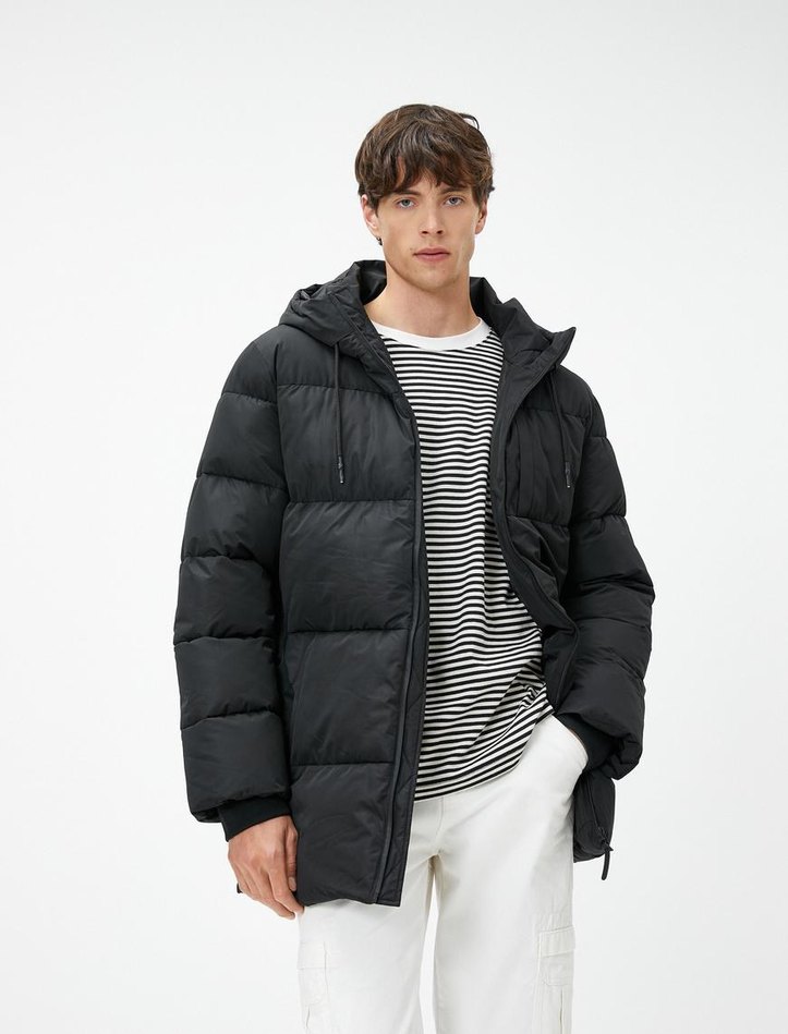 Erkek Gri Midi Kışlık Mont Kapüşonlu