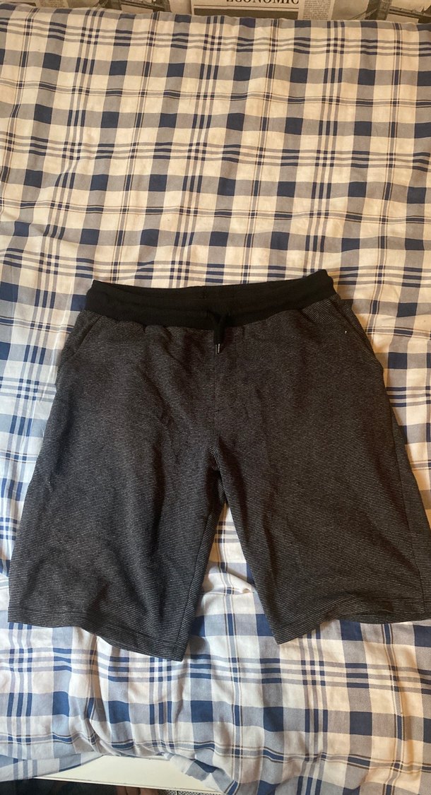 Gri renkli, bol kesim erkek midi şort, kemerli ve yan cepli, rahat sokak stili için uygun.