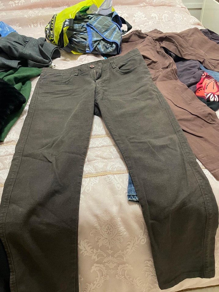 Erkekler için gri, normal boy ve kemerli pantolon. Sentetik kumaştan yapılmış, rahat ve günlük kullanıma uygun.