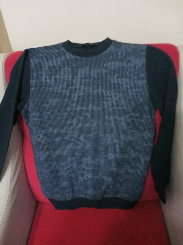 Erkekler için fitted kesim, uzun kollu ve bisiklet yaka sweatshirt.Lacivert ve koyu gri örgü görünümlü günlük sokak stili için uygundur.