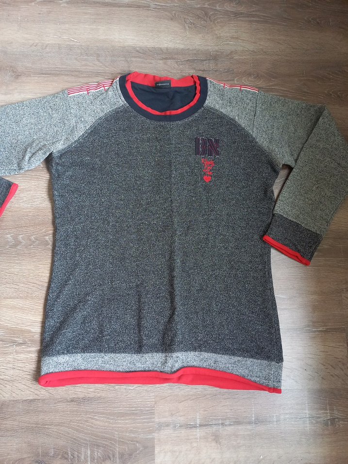 Gri tonlarında, uzun kollu ve yuvarlak yakalı erkek çocuk örgü triko kazak. Rahat kesimli ve yumuşak kumaşlı, kırmızı detaylar bulunur. 3 sefer kullanıldı deforme yoktur. xl beden yazıyor fakat m ile l bedenliler rahatlıkla kullanılabilir. kalıp dar vücuda oturan modeldir. iç kısım havlu dokumadir