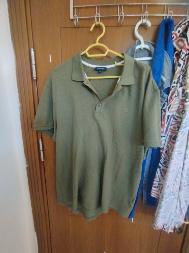 xl ve large bedene uygundur.bir defa giyildi.Erkek gri polo tişört, yakalı ve kısa kollu, salaş kesim. Yumuşak sentetik kumaştan üretilmiş, günlük kullanım için rahat ve şık bir tasarım.
