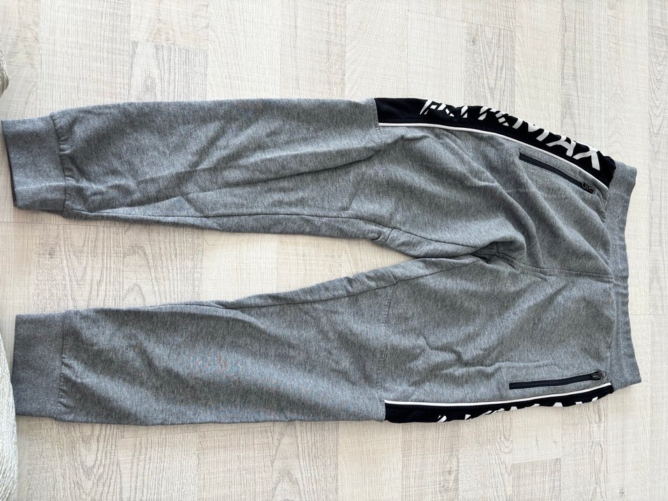Erkekler için gri renkli, rahat kesim ve fermuarlı ceplere sahip eşofman altı. Yumuşak sentetik kumaştan yapılmıştır ve sokak stili sunar. Belindeki dikişlerde sökülme var ama üründe defo bulunmuyor.