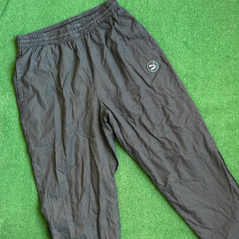 Erkekler için gri renkte, sentetik kumaştan, bol kesim ve fermuarlı ceplere sahip outdoor eşofmandır.