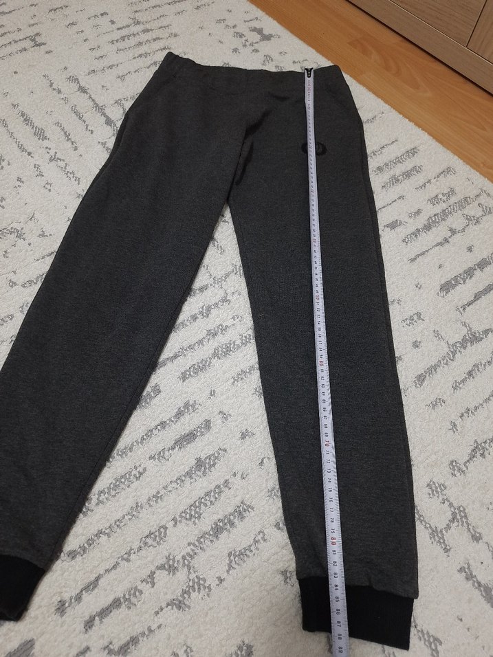 Gri renkli, regular fit erkek eşofman altı, elastik bel bandı ve yumuşak sentetik kumaştan üretilmiştir, günlük rahat kullanım için uygundur.