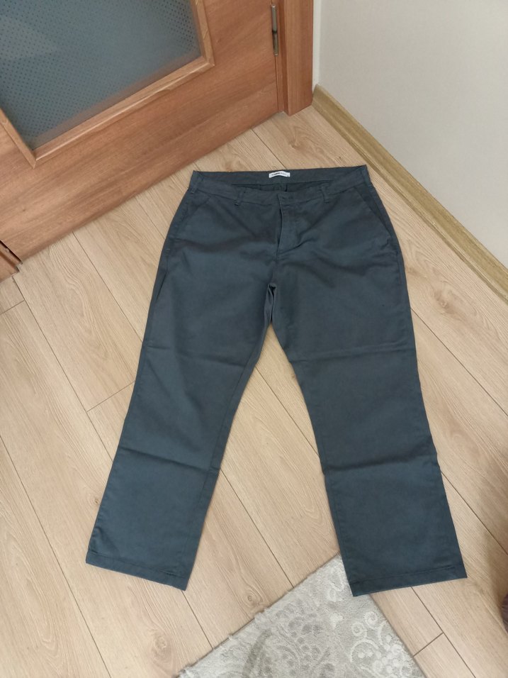 Erkekler için gri renkte, normal boyda ve regular kesimde, düz desensiz kışlık kalın chino pantolon. Günlük rahat kullanıma uygundur. hiç kullanılmadi. paça boyu yapıldı beden olmadığı için satışta.bel 52 cm boy 98 cm . kumaşın rengi yakından fotoğrafta gösterilmiştir