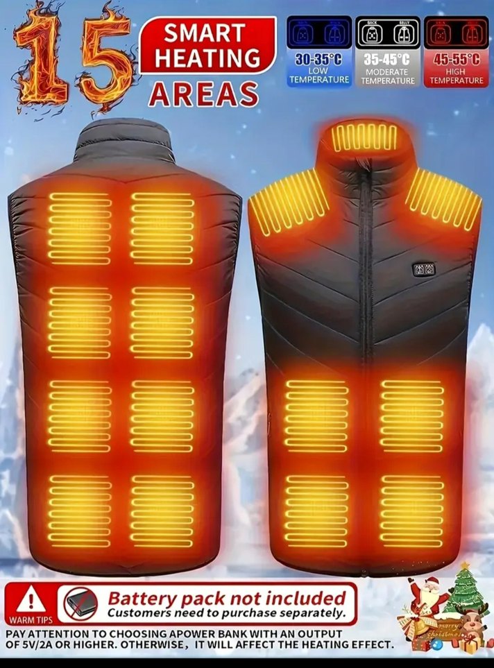 siyah renkte, 15 akıllı ısıtma alanına sahip, kolsuz, fermuarlı powebank ile çalışmaktadır üç farklı modu vardır ürün sıfırdır kesinlik kullanılmamıştır içersinde powebank yoktur haricî olarak takılmaktadır fiyat sondur piyasa fiyatları göre çok uygun yazdım 3000-4000 TL arasında satılan bir üründür tek kaldığı için uygun veriyorum