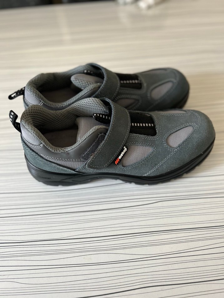 Gri renkli, velcro bantlı, kauçuk tabanlı erkek spor biker tarzı dış mekan ayakkabısı. ️