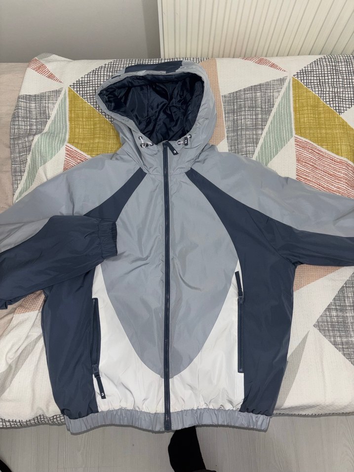 Gri renkte, sentetik kumaştan yapılmış, kapüşonlu ve fermuarlı, uzun kollu ve midi boy erkek rüzgarlık ceket. Sokak stili ve athleisure tarzına uygun, dış mekan kullanımı için ideal. TEK SORUNU SAĞ CEP FERMUARI SIKIŞMIŞ TERZİ HALLEDER 5 DK LIK İŞ