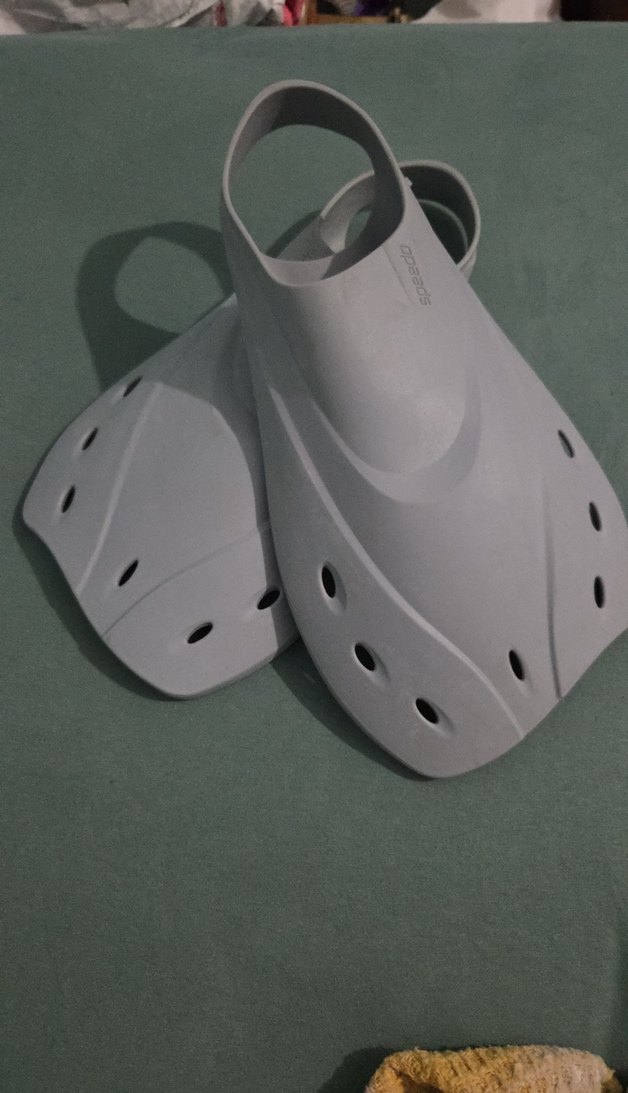Lastik malzemeden yapılmış arkasi acik gri erkek yüzme paleti, spor ve athleisure tarzına uygun L beden 10 12 yas arasi ama sanirim 38 39 40 daha iyi olur 1 2 kere kullanildi sadece