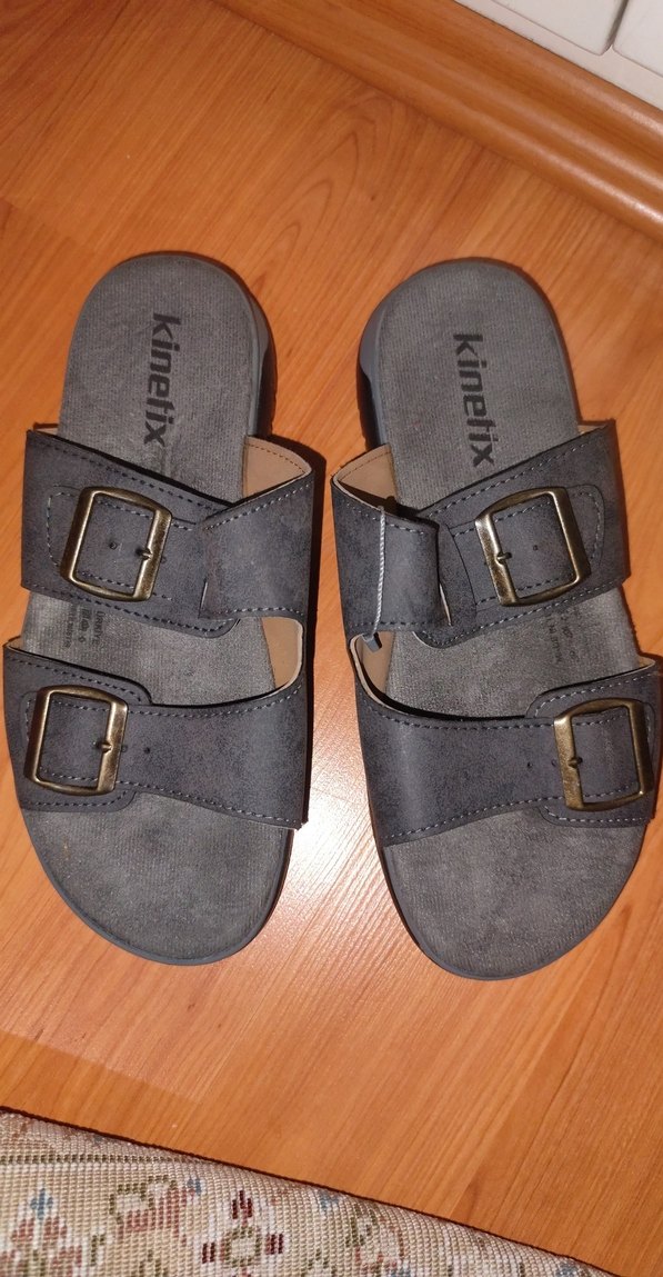 Erkekler için gri kauçuk malzemeden yapılmış, tokalı ve ayarlanabilir kayışlara sahip sandaletler. Günlük rahat kullanıma uygun sade tasarım.