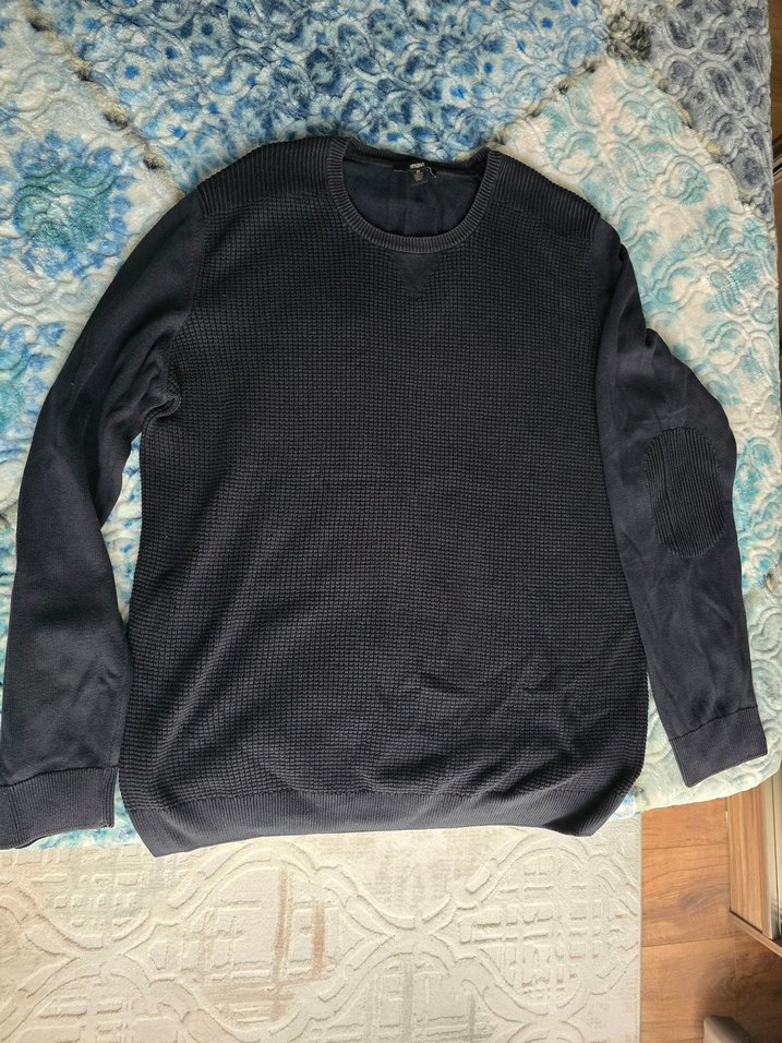 Bu erkek kazak, bol kesim, örme dokulu, uzun kollu ve bisiklet yaka özelliklerine sahiptir.Esneyebilen yapıya sahip, koyu gri renkte, günlük ve sokak stiline uygundur.