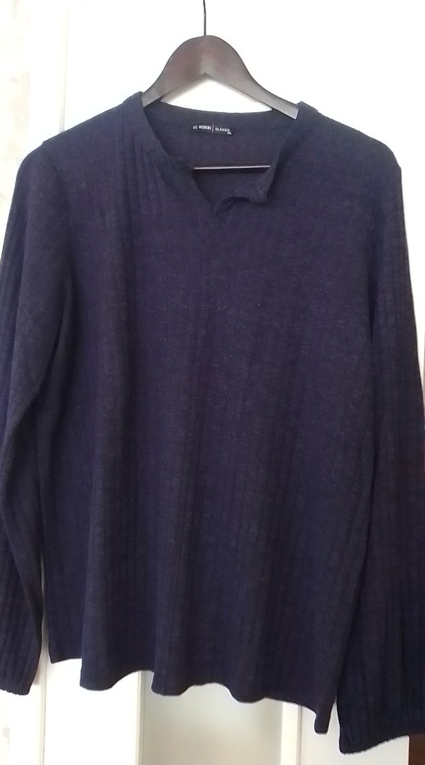 Erkekler için, keten kumaştan örülmüş, gri renkte, V yakalı ve bol kesim uzun kollu triko kazak. Günlük kullanıma uygundur.
