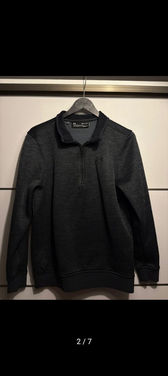 Erkekler için gri renkli, yüksek yakalı, yarım fermuarlı sweatshirt. Uzun kollu, vücuda oturan kesimi ve yumuşak, sıcak kumaşıyla günlük kullanıma uygundur.