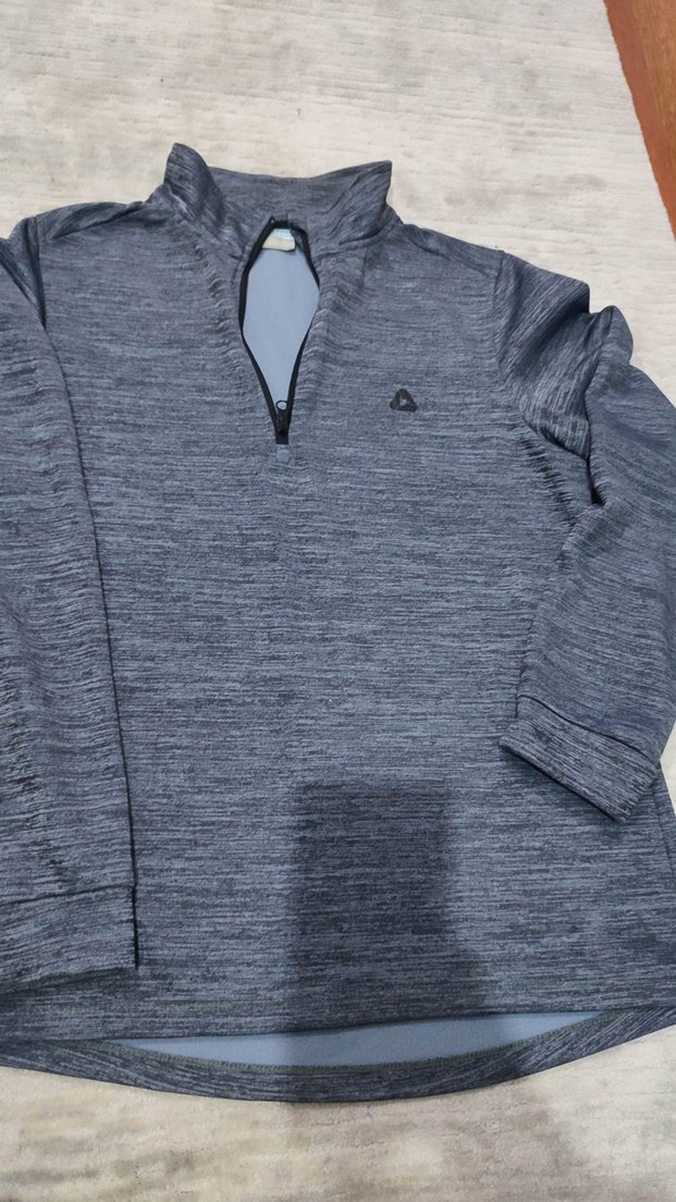 Erkekler için gri renkli, yüksek yakalı ve yarım fermuarlı sweatshirt. Uzun kollu ve sentetik yumuşak kumaştan, günlük ve sokak stili için uygun.