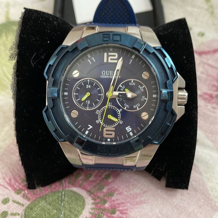 W1254G1 kodu ile araştırabilirsiniz. 100m water resistance Tüm özellikler aktif Guess in sitesinde aldım. Çok az çizik var sağda foto mevcut