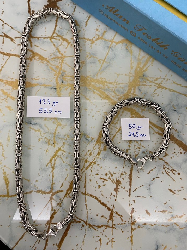 KOLYE 133,22 GRAM NET Ağırlığında 55.5 cm uzunluğunda.✅ BİLEKLİK 50,82 GRAM NET Ağırlığında 21.5 cm uzunluğunda.✅ TAKI KUTUSUNDA ÖZENLİ ŞEKİLDE PAKETLENİP TESLİM EDİLECEKTİR.✅