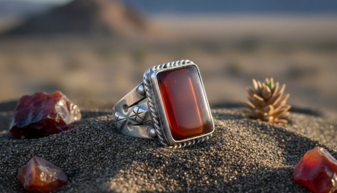 Erkek Gümüş Yüzük - Özel Kesim Kırmızı Akik Taşlı