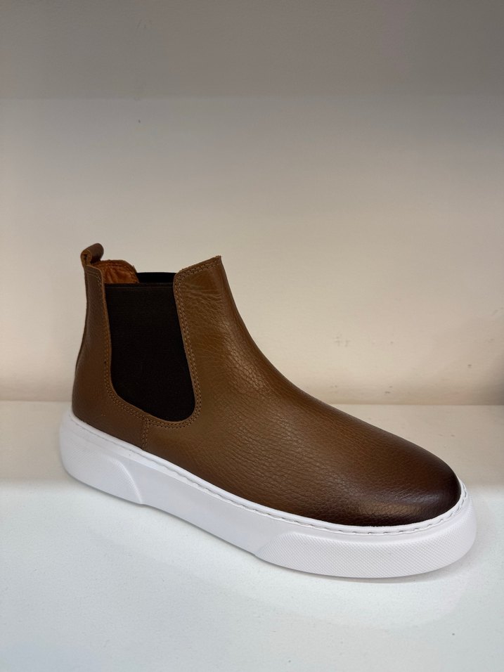 Beyaz tabanlı, kahverengi, desen içermeyen erkek botu. Güncel ve rahat sokak tarzı için ideal. Orjinal Deri Kaliteli Bot modelidir Çoğu numarası mevcuttur