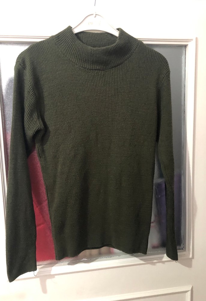 Koyu yeşil, balıkçı yaka, uzun kollu, yün triko kazak. Rahat ve şık, günlük kullanıma uygun. 65-45