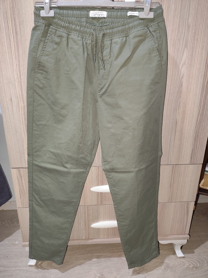 Beli bağcıklı, bol kesim, haki renkli pamuklu pantolon. Orta boy ve gündelik kullanıma uygun. Sıfır üründür, bedeni bana dar olduğu için satıyorum. Hiç giyemedim. İade süresine yetişemediğim için iade edemedim. 32 beden Jogger Pantolon.