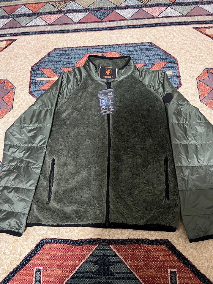 Erkek mont, koyu yeşil yumuşak polar ön ve kapitone uzun kollu tasarıma sahip. Fermuarlı, bisiklet yaka ve rahat kesimlidir. Dış mekan için uygundur.